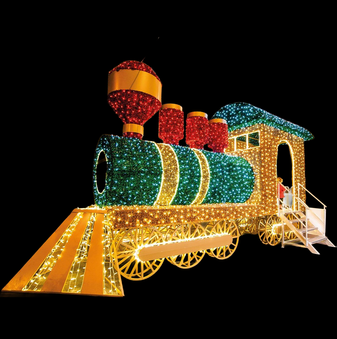 A 14 foot by 4 foot by 8 foot colorful LED train installation that delights guests of all ages.