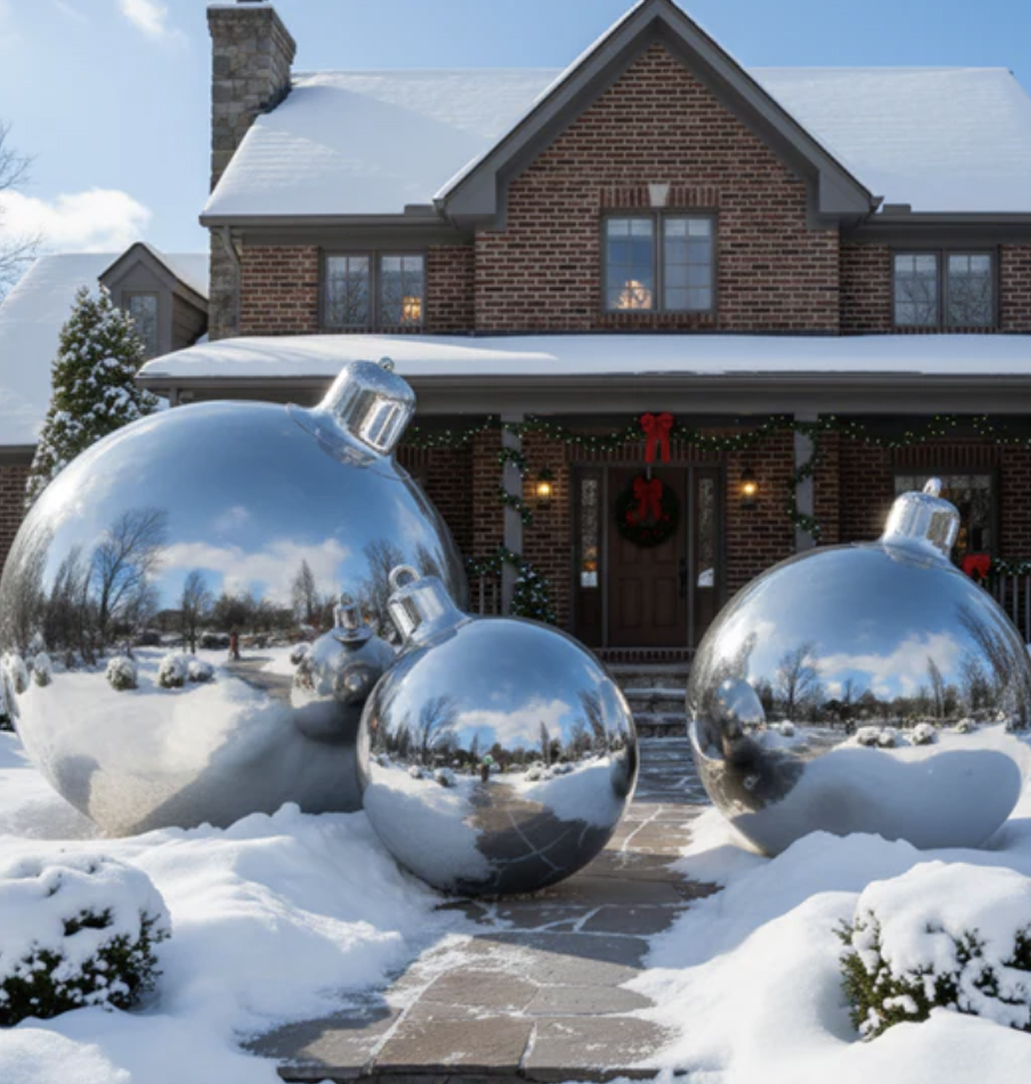A 2 foot by 3 foot by 4 foot bright, oversized ornament sculpture designed to create a festive entrance or decorative focal point.